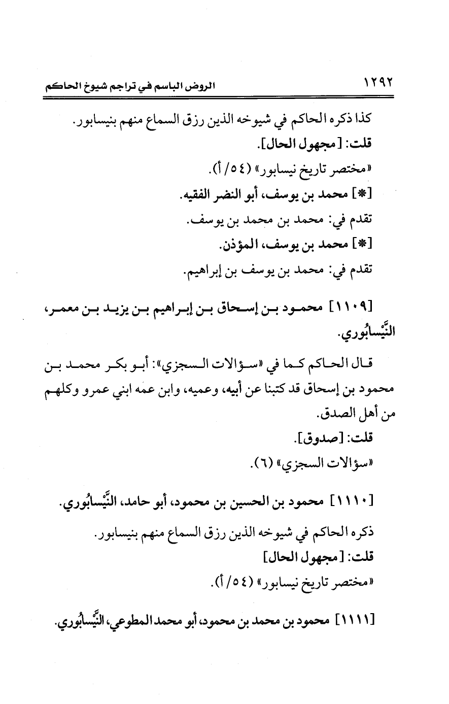 كتاب الروض الباسم في تراجم شيوخ الحاكم (اسم الجزء: 2)