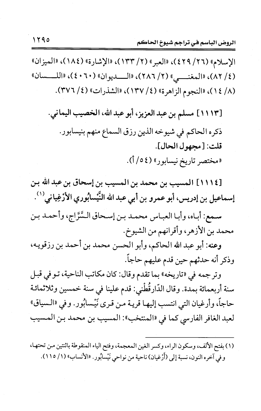 [1114] المسيب بن محمَّد بن المسيب بن إسحاق بن عبد الله بن إسماعيل بن إدريس، أبو عمرو بن أبي عبد الله النَّيْسابُوري الأرْغِيانى (¬1).