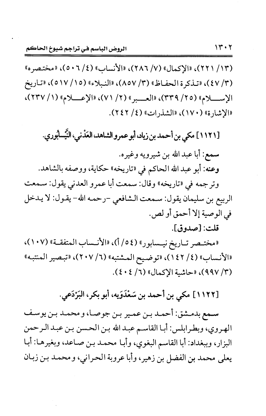 [1122] مكي بن أحمد بن سَعْدَوَيه، أبو بكر، البَرْدَعي.