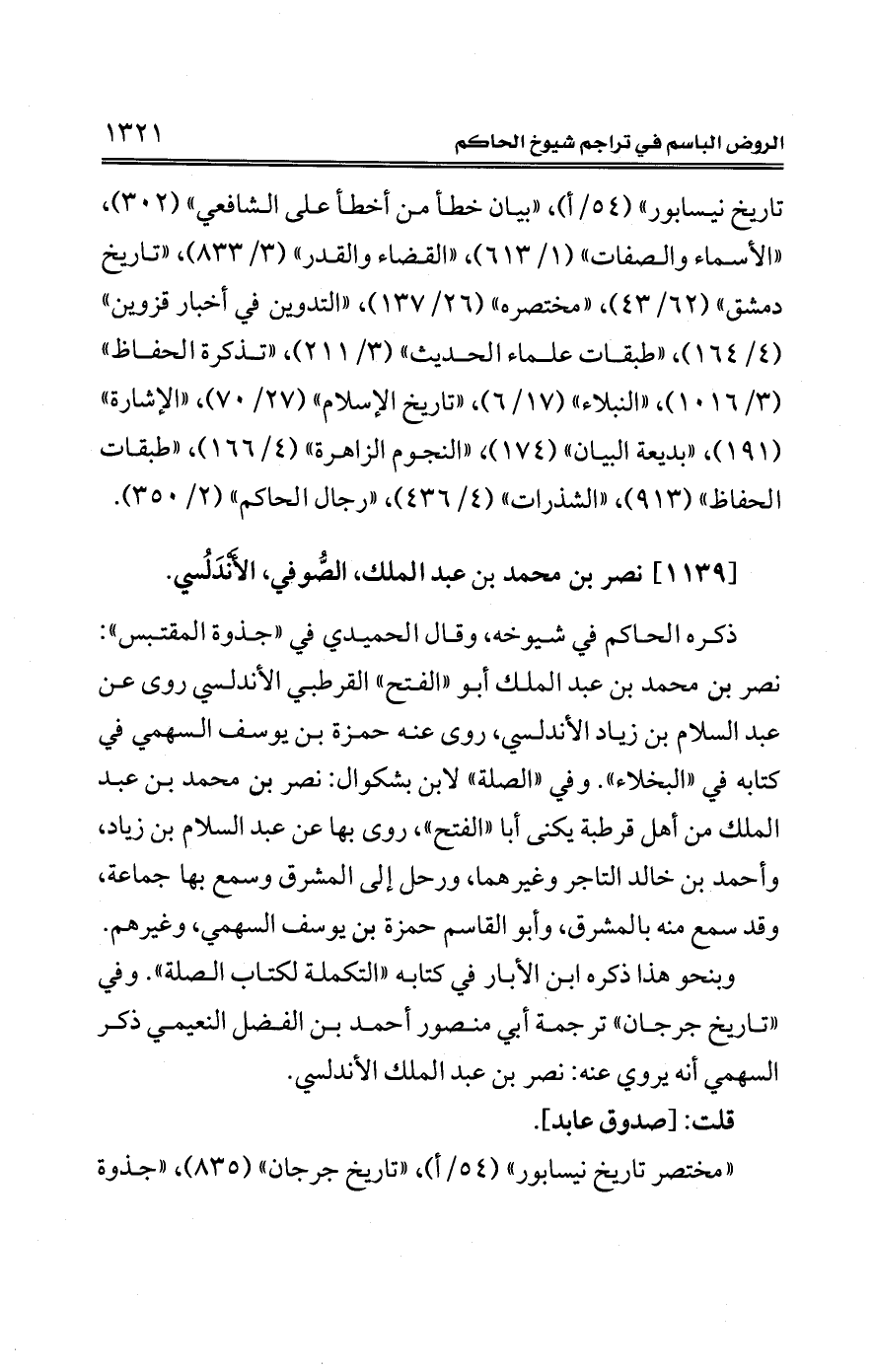 [1139] نصر بن محمد بن عبد الملك، الصُّوفي، الأَنْدَلُسي.