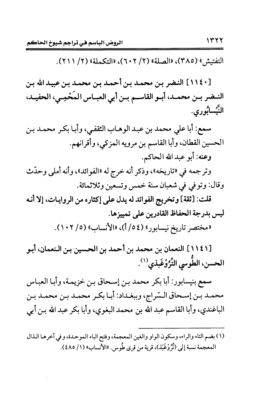 [1141] النعمان بن محمد بن أحمد بن الحسين بن النعمان، أبو الحسن، الطُّوسي التُرُوْغَبذي (¬1).