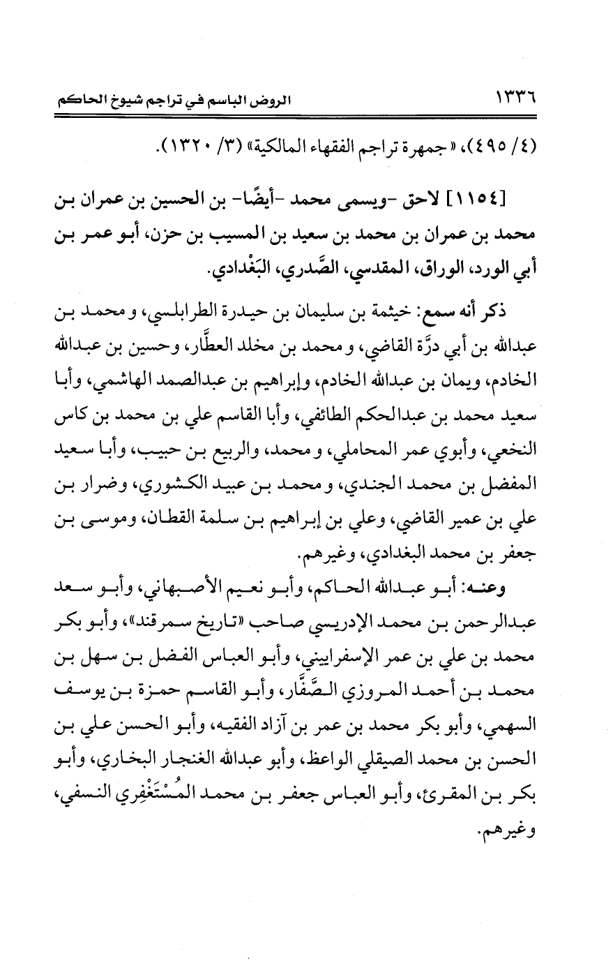 [1154] لاحق -ويسمى محمد -أيضًا- بن الحسين بن عمران بن محمد بن عمران بن محمد بن سعيد بن المسيب بن حزن، أبو عمر بن أبي الورد، الوراق، المقدسي، الصَّدري، البَغْدادي.