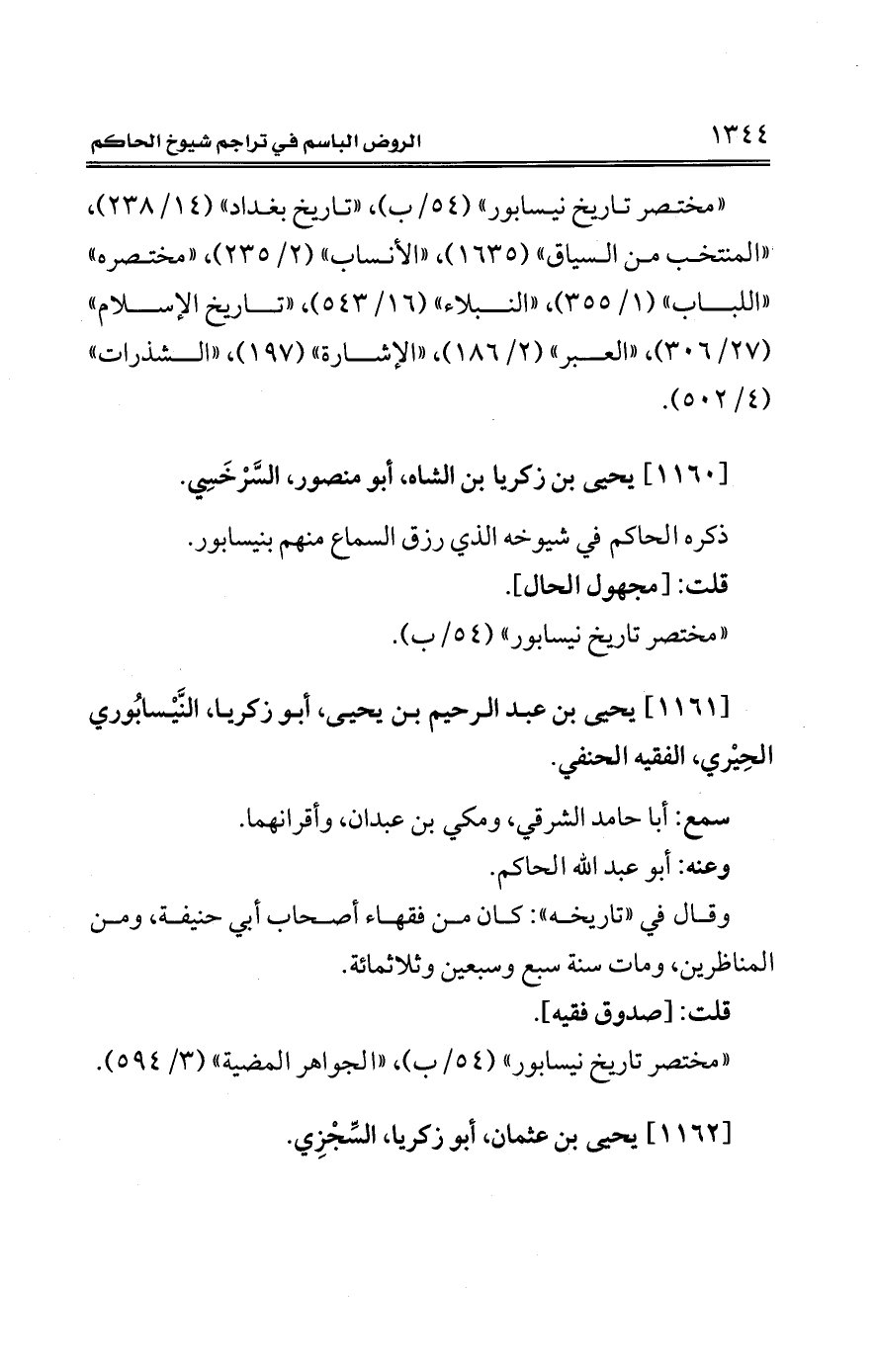 [1161] يحيى بن عبد الرحيم بن يحيى، أبو زكريا، النَّيْسابُوري الحِيْري، الفقيه الحنفي.