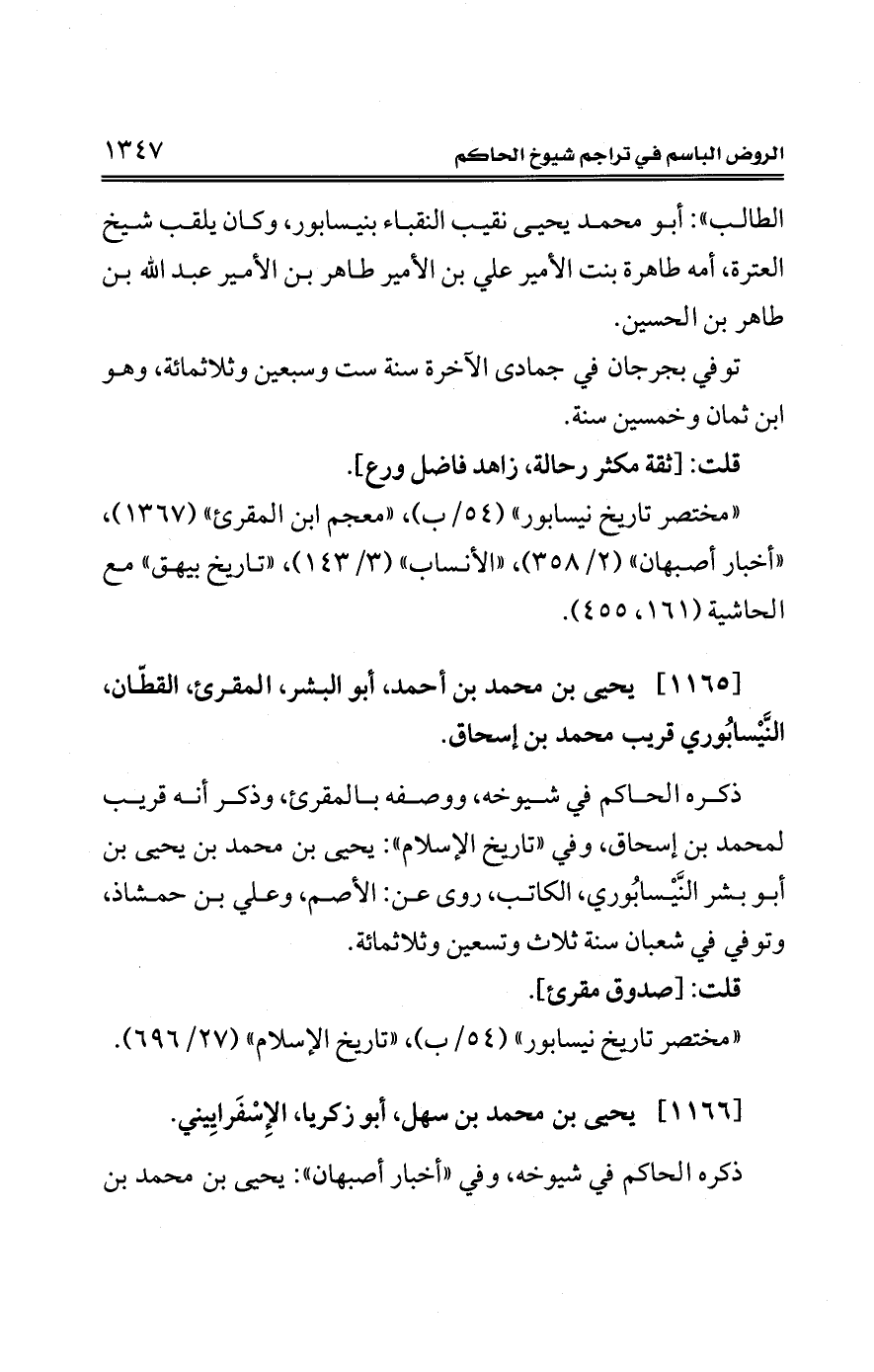 [1166] يحيى بن محمد بن سهل، أبو زكريا، الإِسْفَرايِيني.
