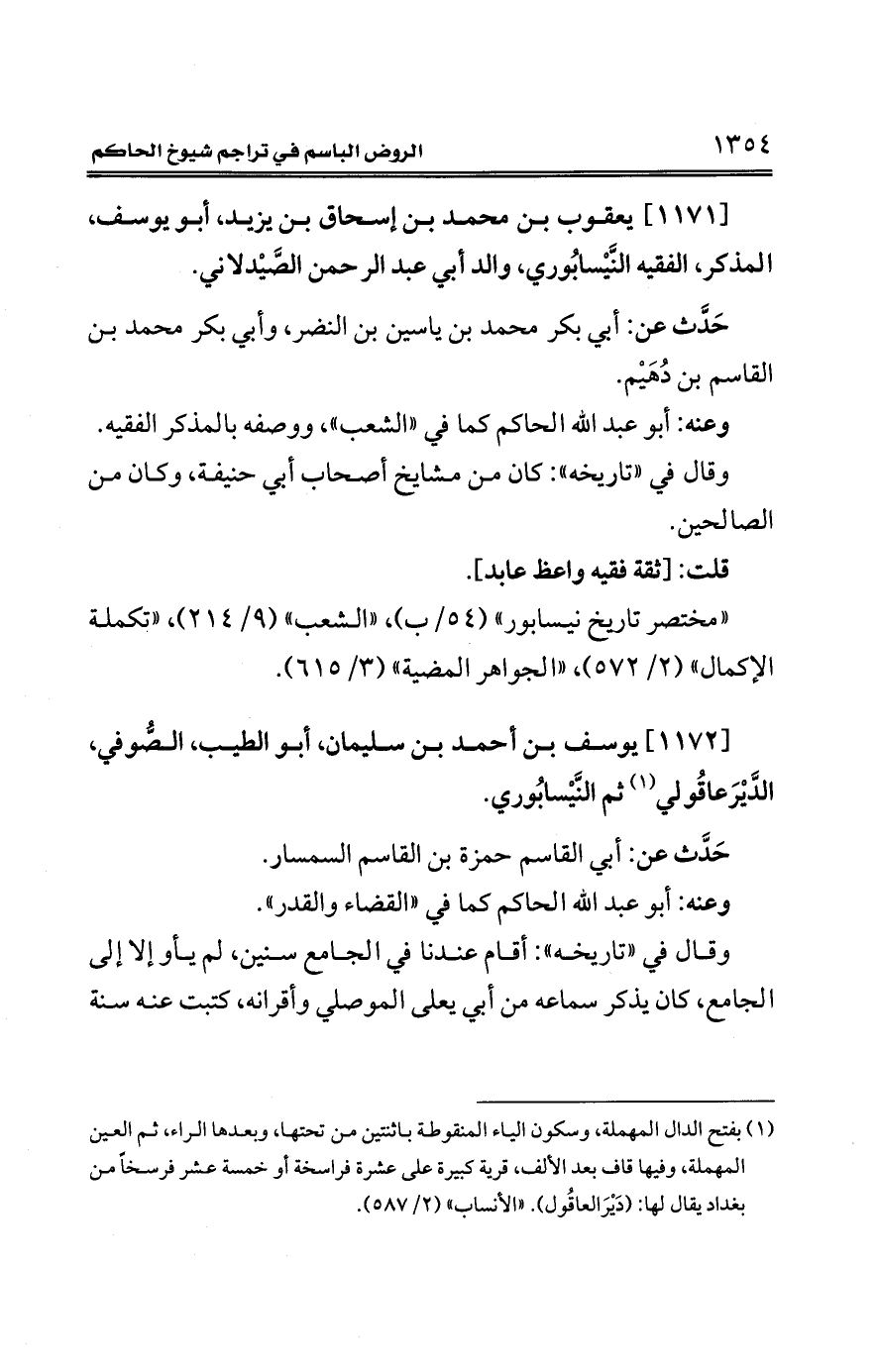 [1171] يعقوب بن محمَّد بن إسحاق بن يزيد، أبو يوسف، المذكر، الفقيه النَّيْسابُوري، والد أبي عبد الرحمن الصَّيْدلاني.