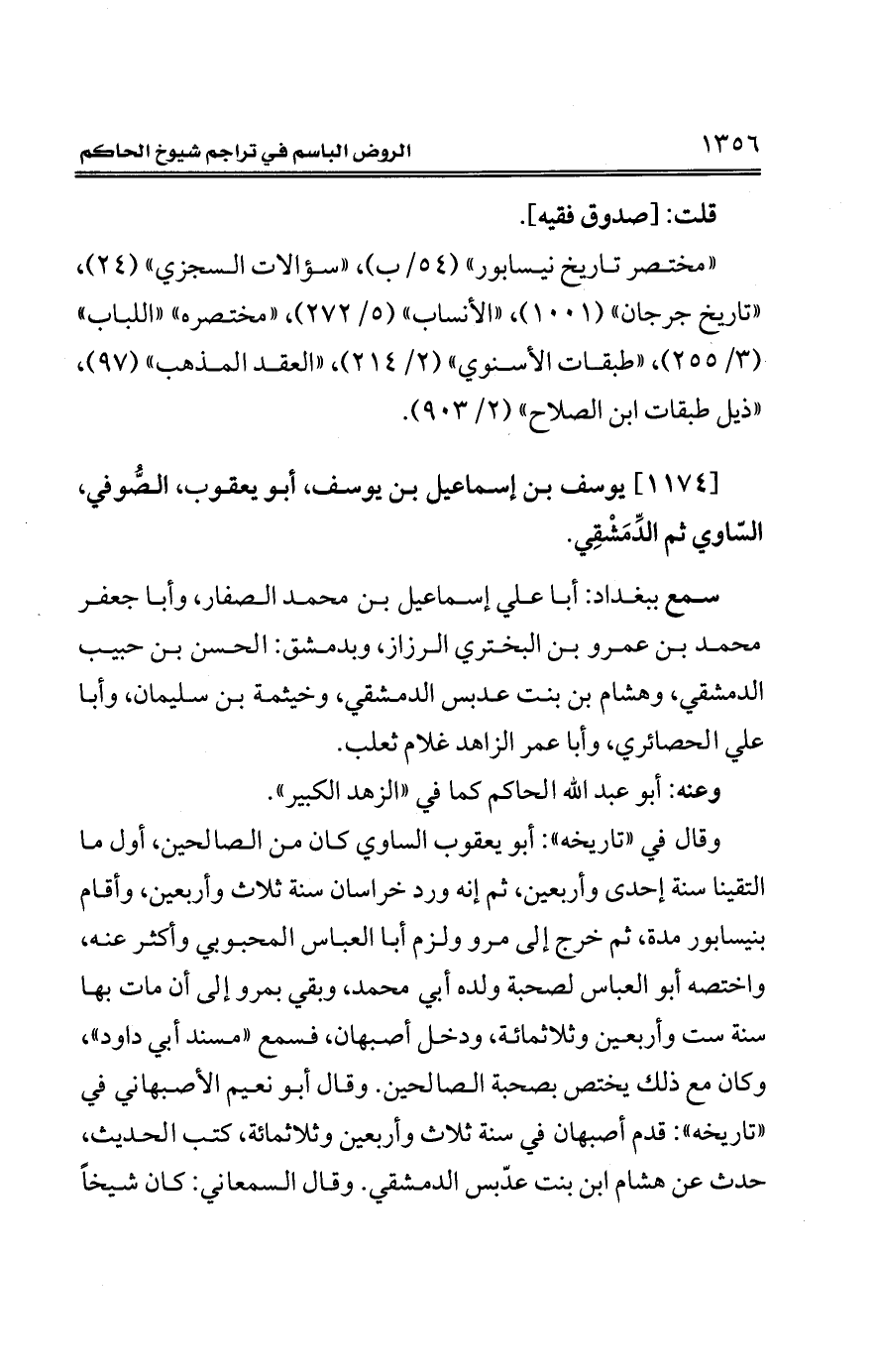 [1174] يوسف بن إسماعيل بن يوسف، أبو يعقوب، الصُّوفي، السّاوي ثم الدِّمَشْقِي.