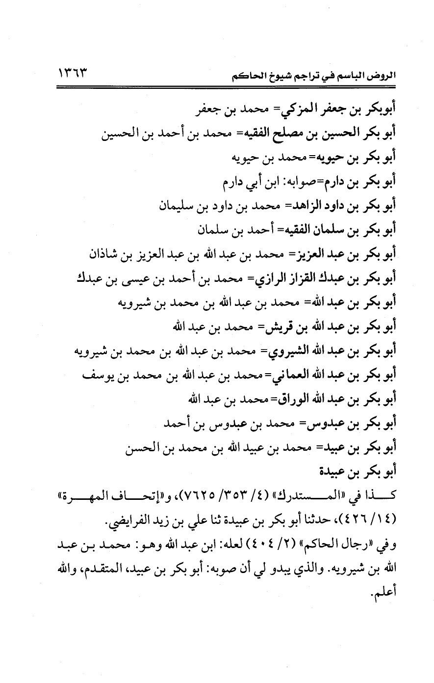 وفي "رجال الحاكم" (2/ 404) لعله: ابن عبد الله وهو: محمَّد بن عبد الله بن شيرويه. والذي يبدو لي أن صوبه: أبو بكر بن عبيد، المتقدم، والله أعلم.