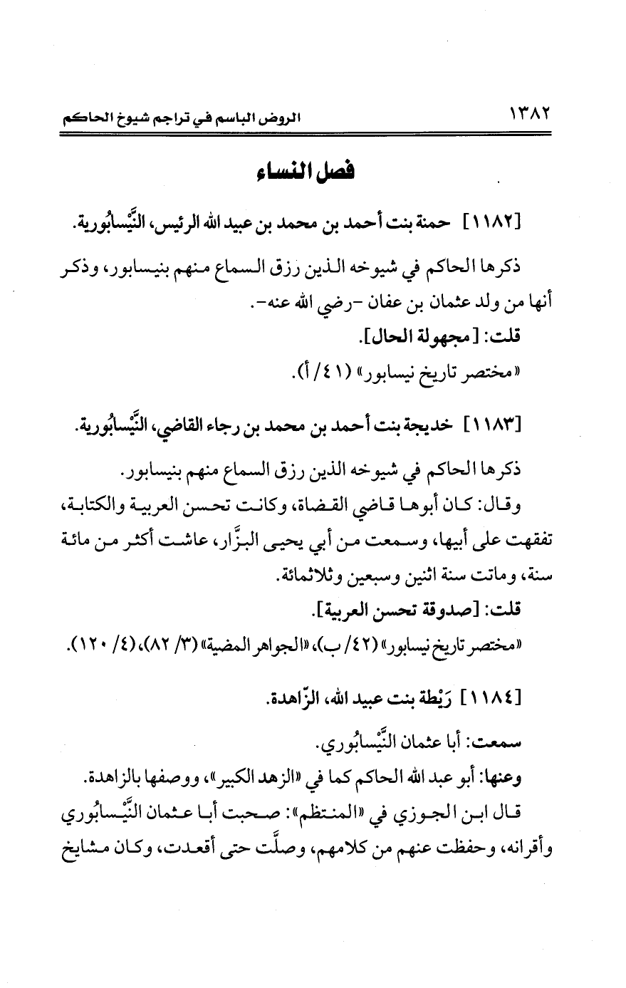 [1182] حمنة بنت أحمد بن محمَّد بن عبيد الله الرئيس، النَّيْسابُورية.