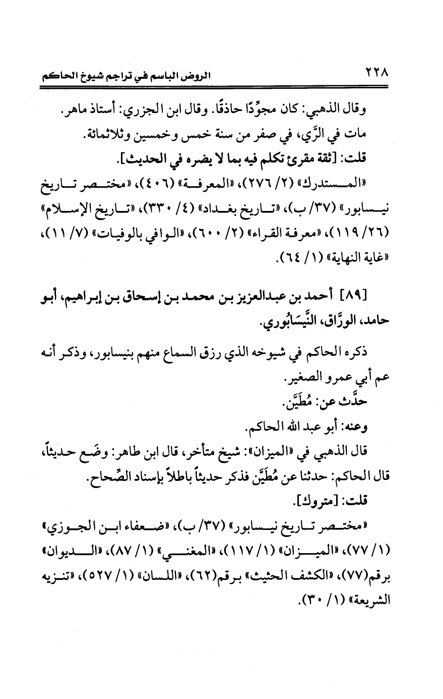 [89] أحمد بن عبد العزيز بن محمد بن إسحاق بن إبراهيم، أبو حامد، الورَّاق، النَّيسَابُوري.