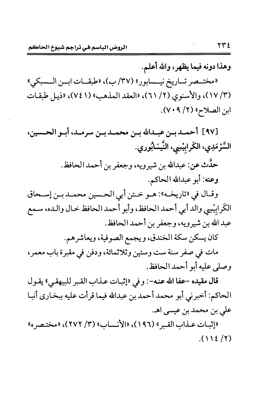 [97] أحمد بن عبد الله بن محمد بن سرمد، أبو الحسين، السَّرْمَدِي، الكَرابِيْسِي، النَّيسَابُوري.