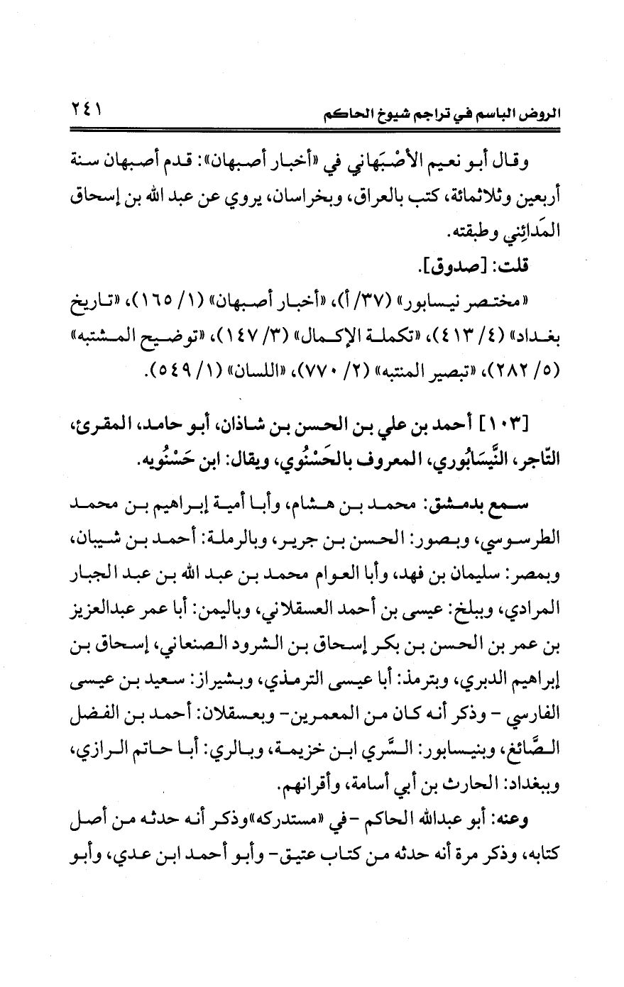 كتاب الروض الباسم في تراجم شيوخ الحاكم (اسم الجزء: 1)
