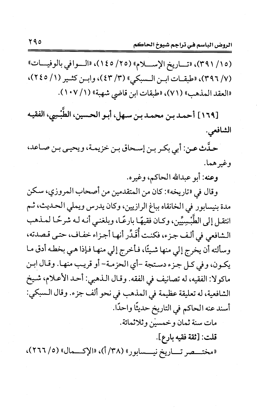 [169] أحمد بن محمد بن سهل، أبو الحسين، الطَّبْسِي، الفقيه الشافعي.
