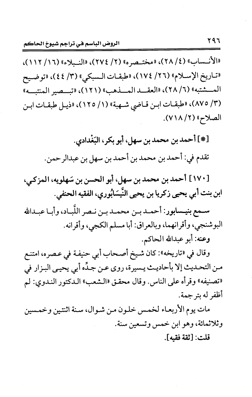 [170] أحمد بن محمد بن سهل، أبو الحسن بن سَهلويه، المزكي، ابن بنت أبي يحيى زكري ابن يحيى النَّيسَابُوري، الفقيه الحنفي.
