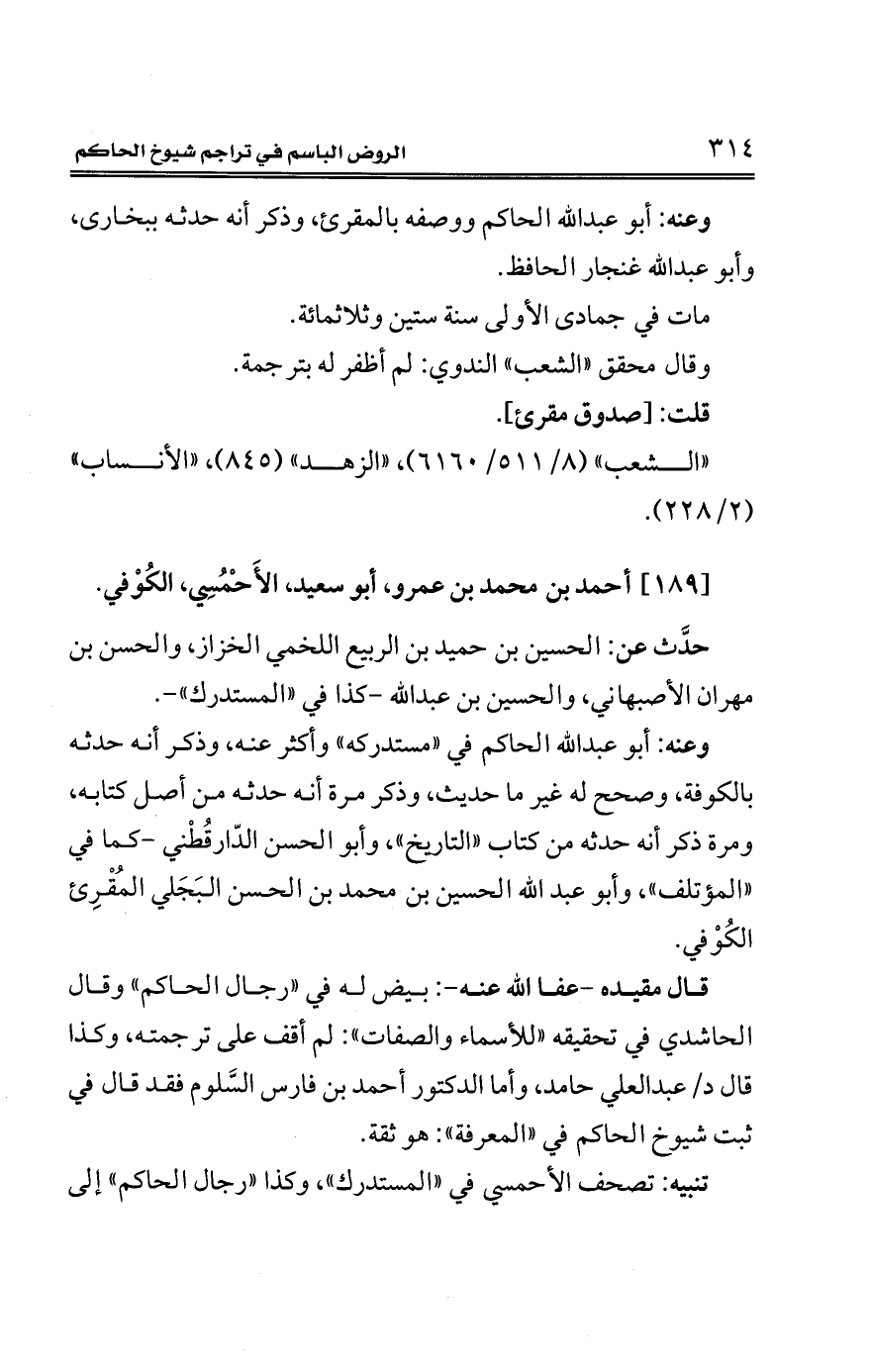 [189] أحمد بن محمَّد بن عمرو، أبو سعيد، الأَحْمُسِي، الكُوْفي.