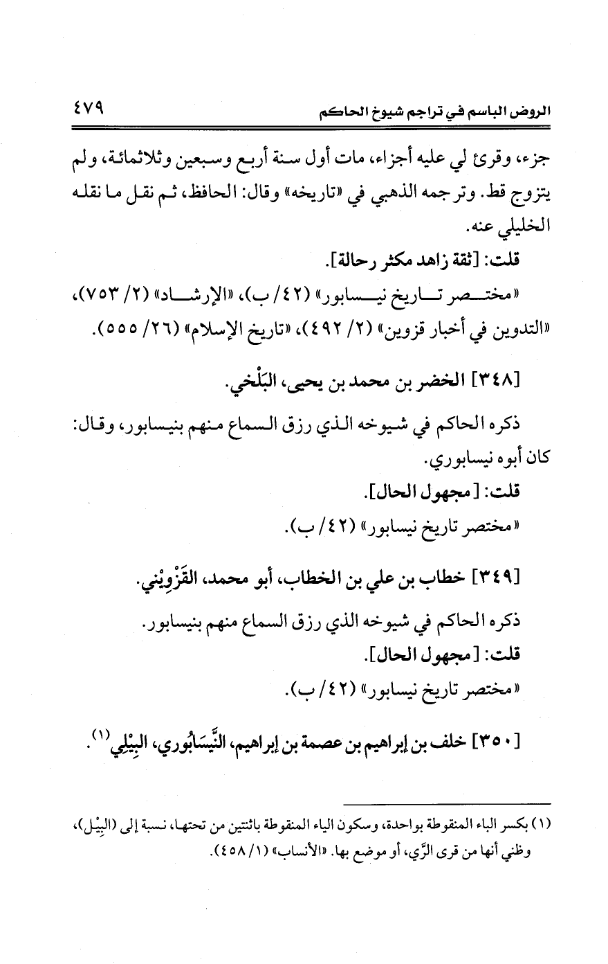 [350] خلف بن إبراهيم بن عصمة بن إبراهيم، النَّيسَابُوري، البِيْلِي (¬1).