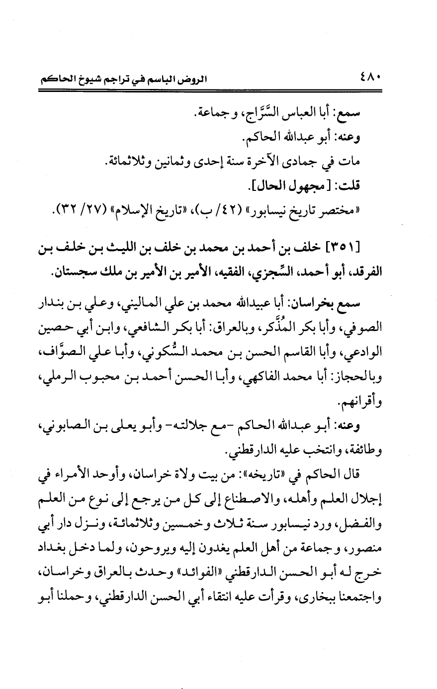 [351] خلف بن أحمد بن محمد بن خلف بن الليث بن خلف بن الفرقد، أبو أحمد، السِّجزي، الفقيه، الأمير بن الأمير بن ملك سجستان.