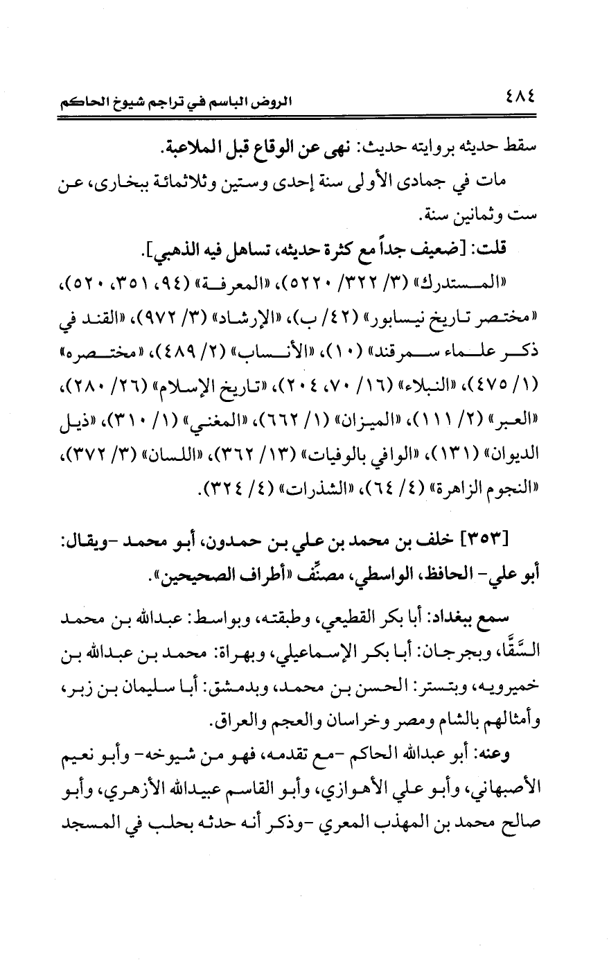 [353] خلف بن محمد بن علي بن حمدون، أبو محمد -ويقال: أبو علي- الحافظ، الواسطي، مصنِّف "أطراف الصحيحين".