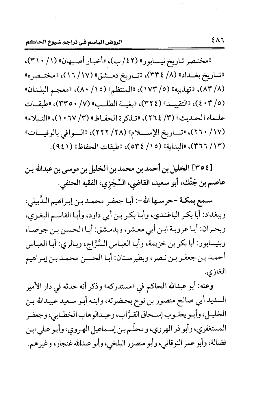 [354] الخليل بن أحمد بن محمد بن الخليل بن موسى بن عبد الله بن عاصم بن جَنْك، أبو سعيد، القاضي، السِّجْزِي، الفقيه الحنفي.