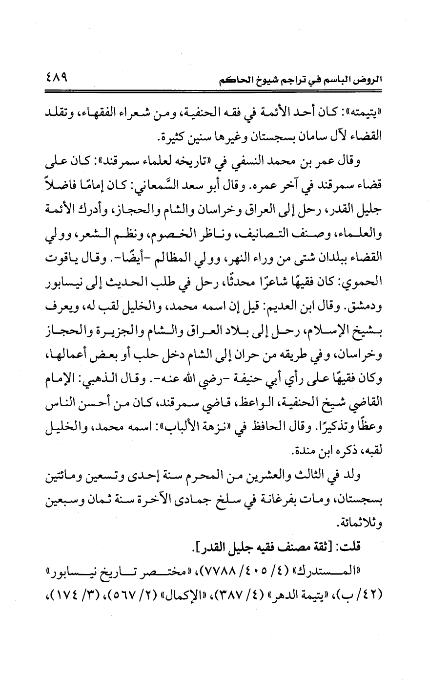 "يتيمته": كان أحد الأئمة في فقه الحنفية، ومن شعراء الفقهاء، وتقلد القضاء لآل سامان بسجستان وغيرها سنين كثيرة.
