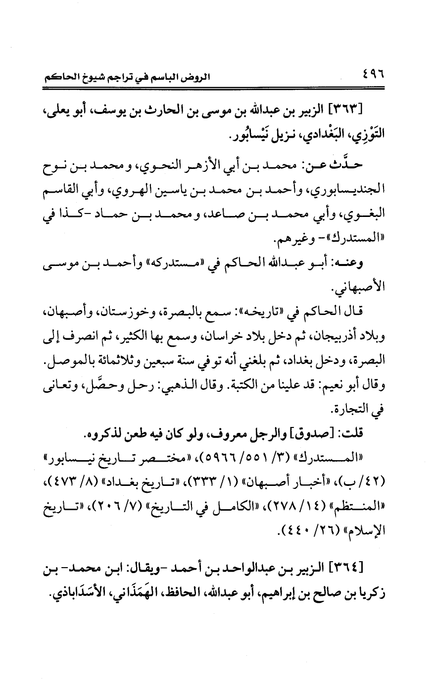 [363] الزبير بن عبد الله بن موسى بن الحارث بن يوسف، أبو يعلى، التَوْزِي، البَغْدادي، نزيل نَيْسابُور.