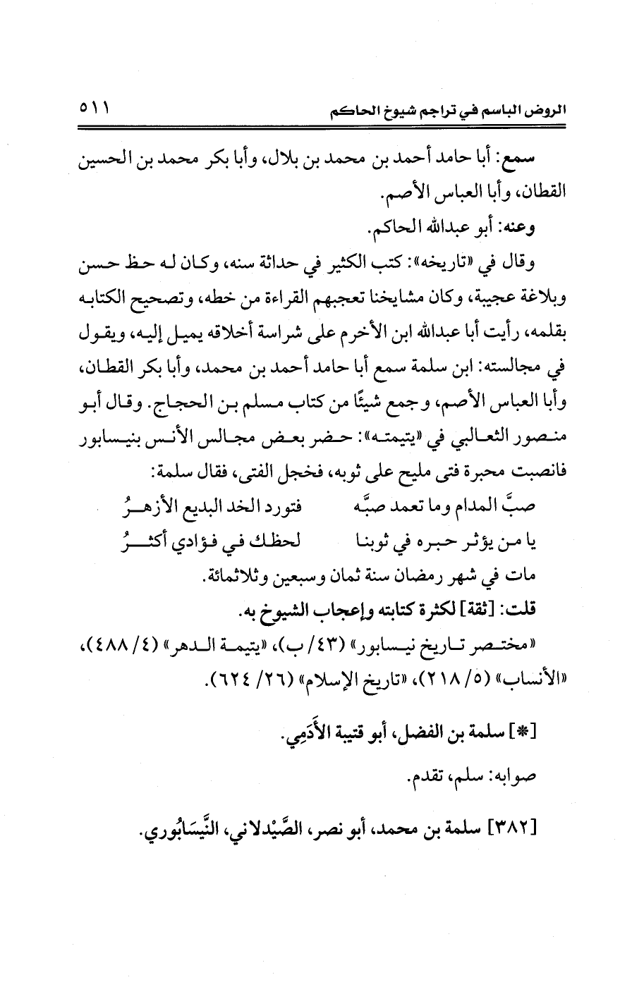 كتاب الروض الباسم في تراجم شيوخ الحاكم (اسم الجزء: 1)