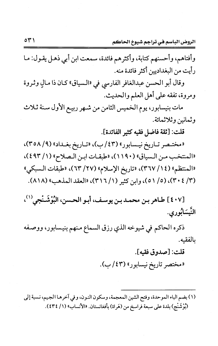 [407] طاهر بن محمد بن يوسف، أبو الحسن، البُوْشَنْجي (¬1)، النَّيسَابُوري.