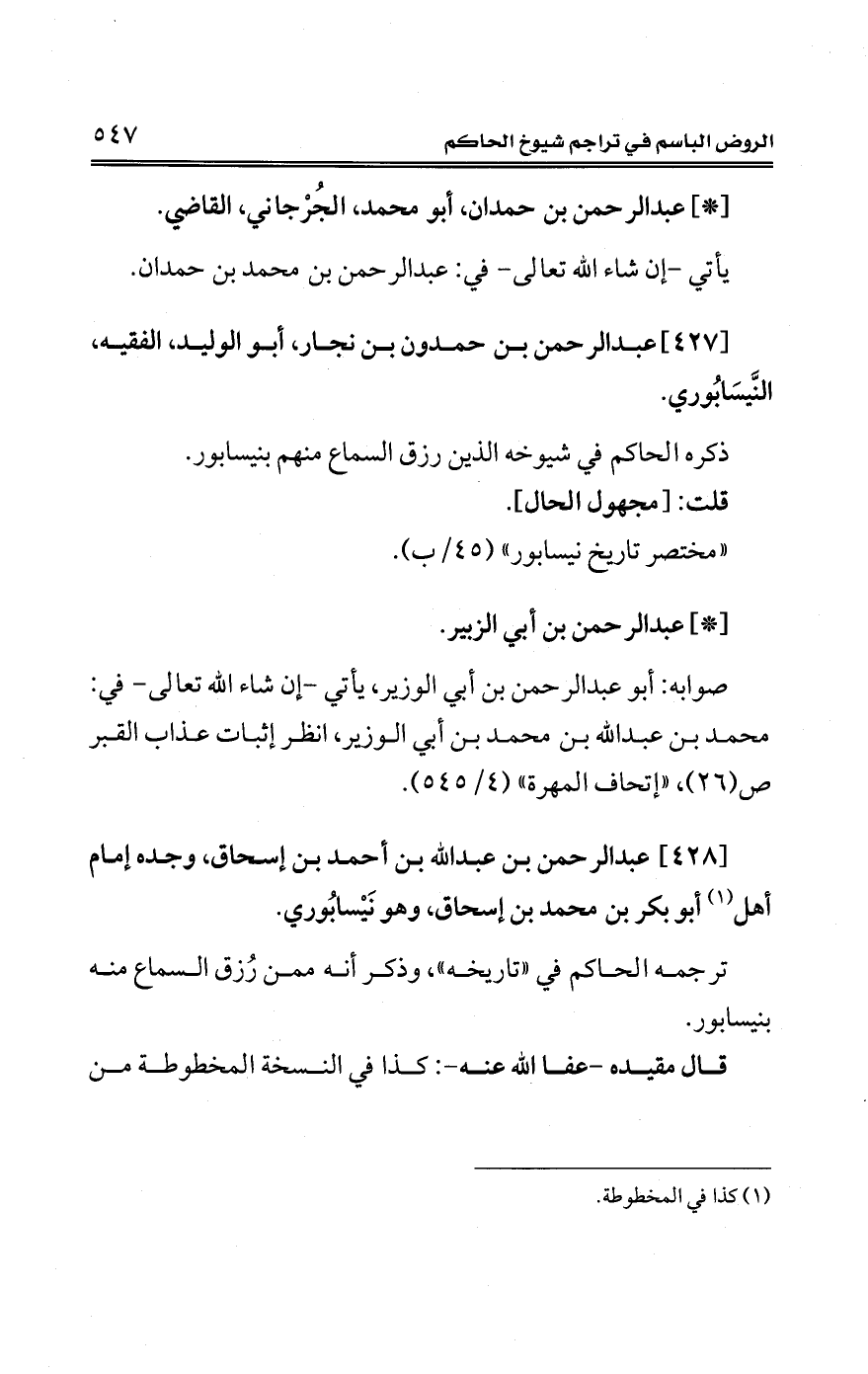 [427] عبد الرحمن بن حمدون بن نجار، أبو الوليد، الفقيه، النَّيسَابُوري.