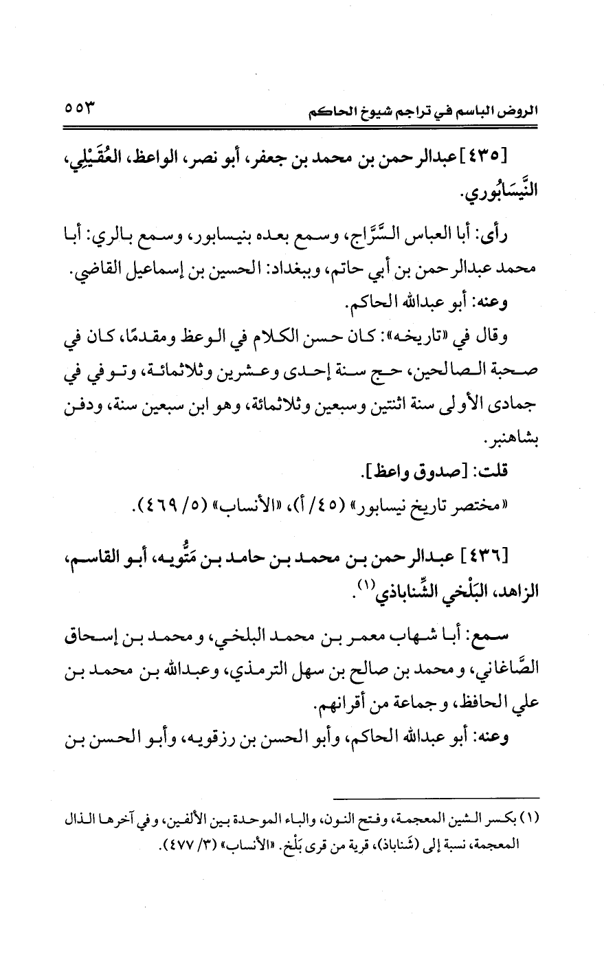 [435] عبد الرحمن بن محمد بن جعفر، أبو نصر، الواعظ، العُقَيْلِي، النَّيسَابُوري.