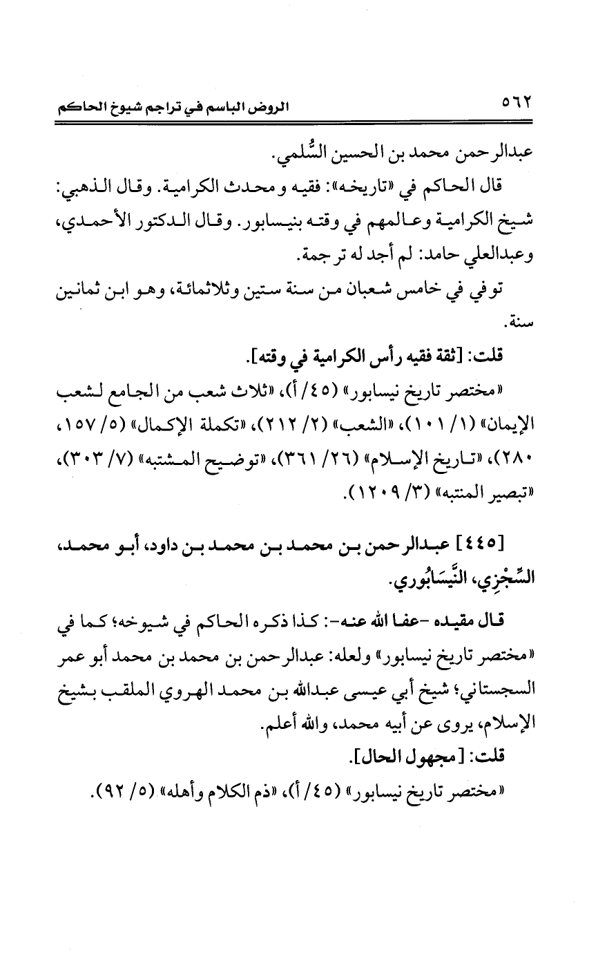 [445] عبد الرحمن بن محمد بن محمد بن داود، أبو محمد، السِّجْزِي، النَّيسَابُوري.