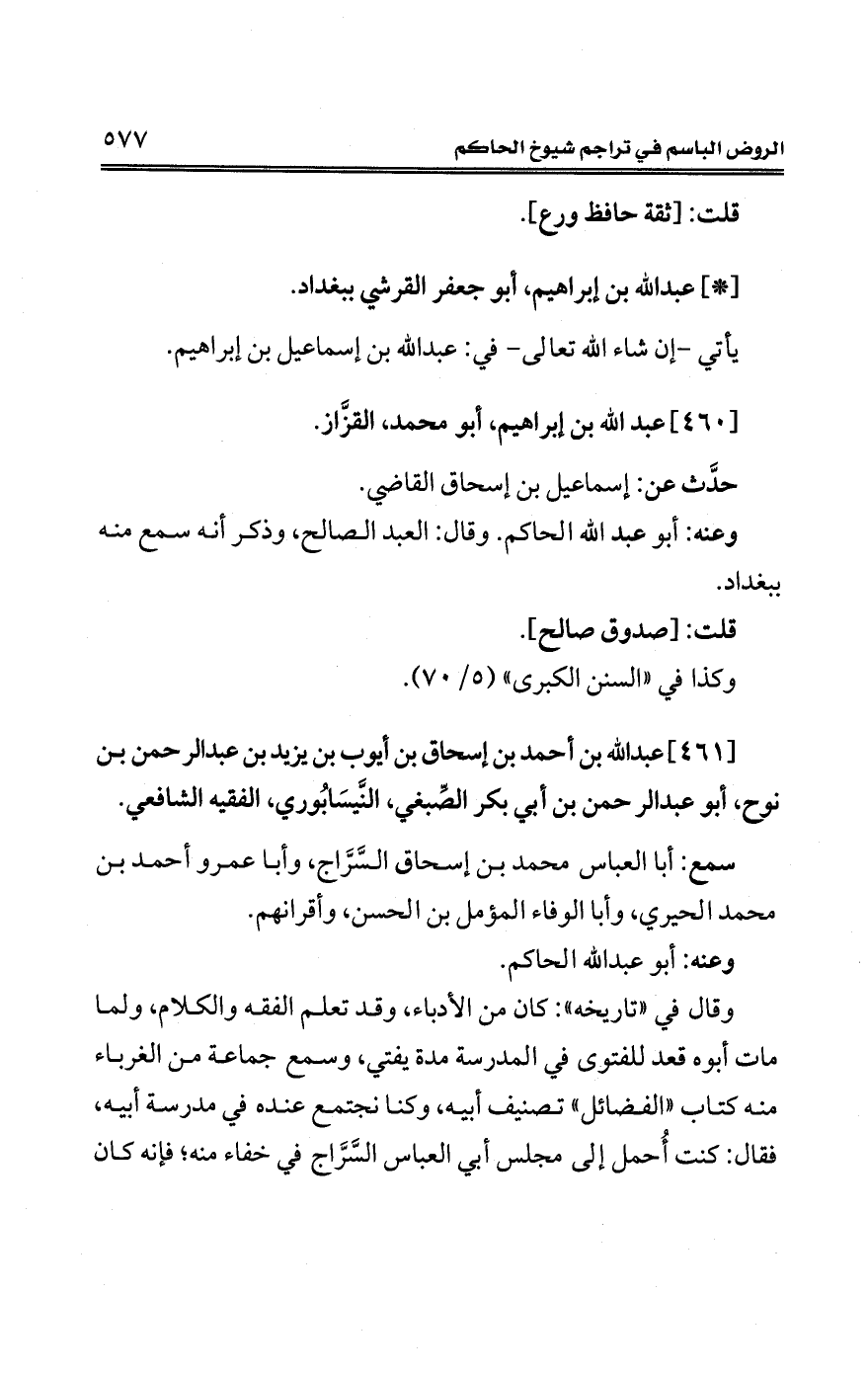 [461] عبد الله بن أحمد بن إسحاق بن أيوب بن يزيد بن عبد الرحمن بن نوح، أبو عبد الرحمن بن أبي بكر الصّبغي، النَّيسَابُوري، الفقيه الشافعي.
