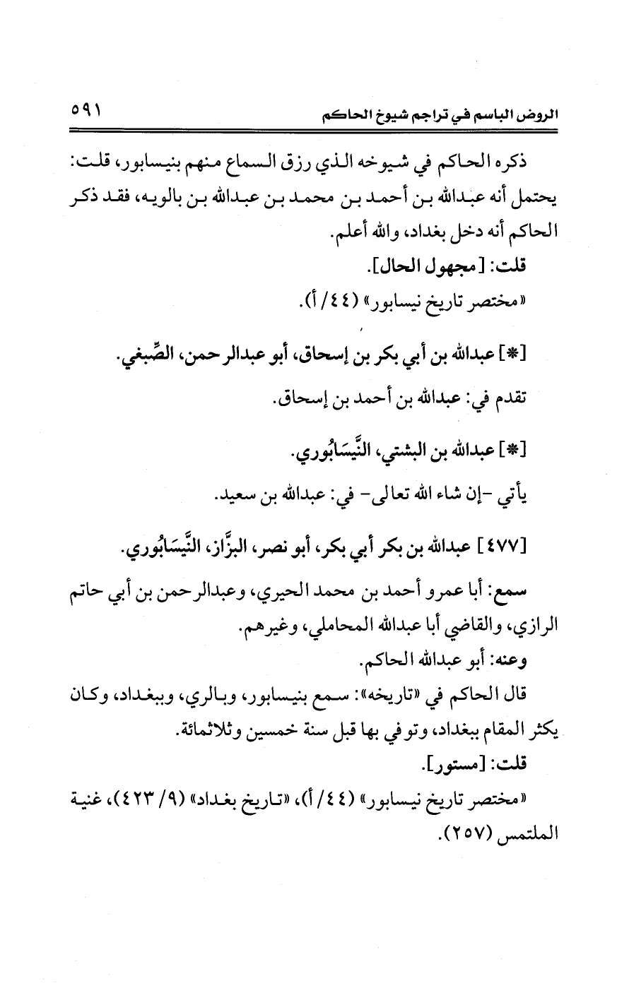 [477] عبد الله بن بكر أبي بكر، أبو نصر، البزَّاز، النَّيسَابُوري.
