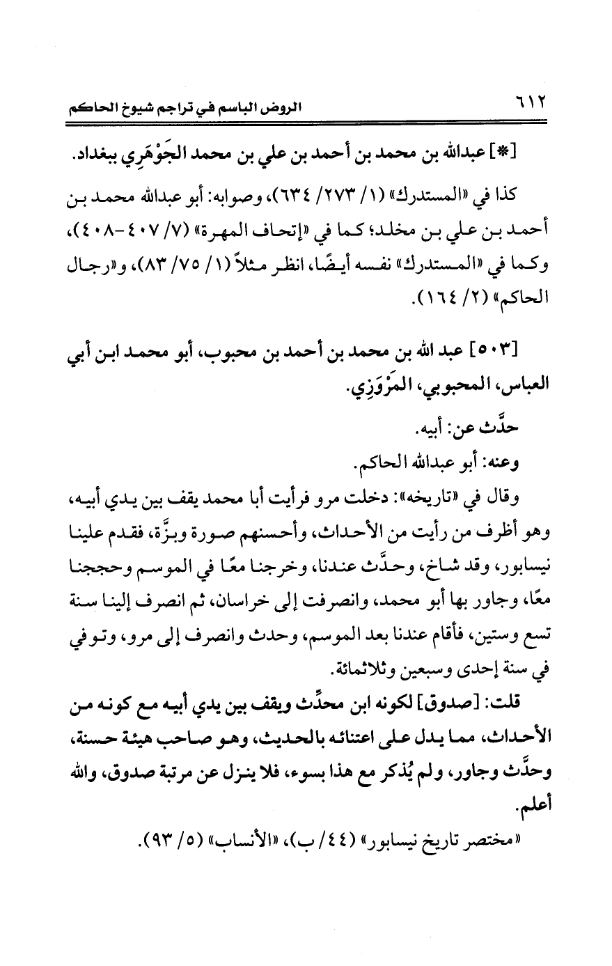 كتاب الروض الباسم في تراجم شيوخ الحاكم (اسم الجزء: 1)