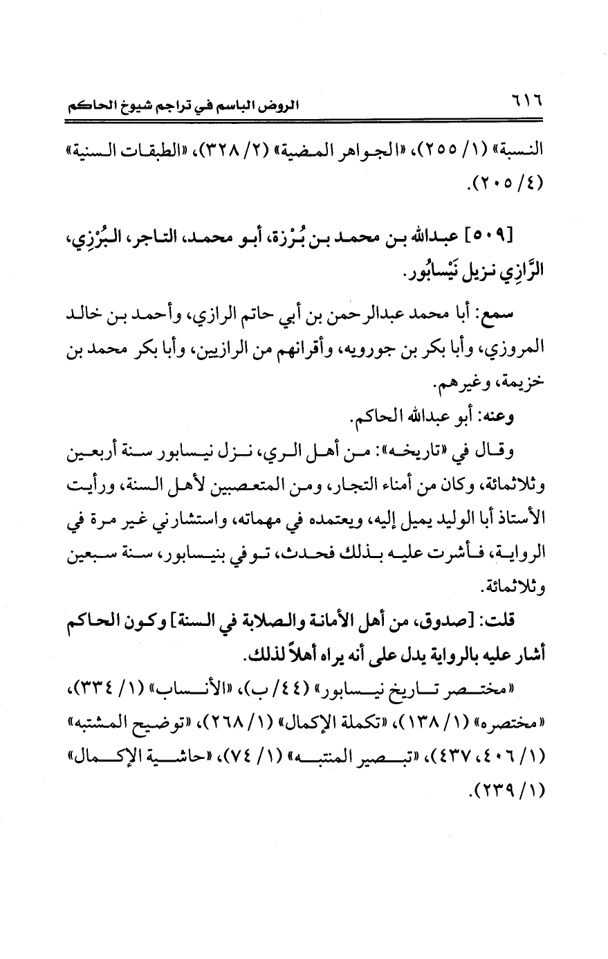 [509] عبد الله بن محمَّد بن بُرْزة، أبو محمَّد، التاجر، البُرْزِي، الزَازِي نزيل نَيْسابُور.