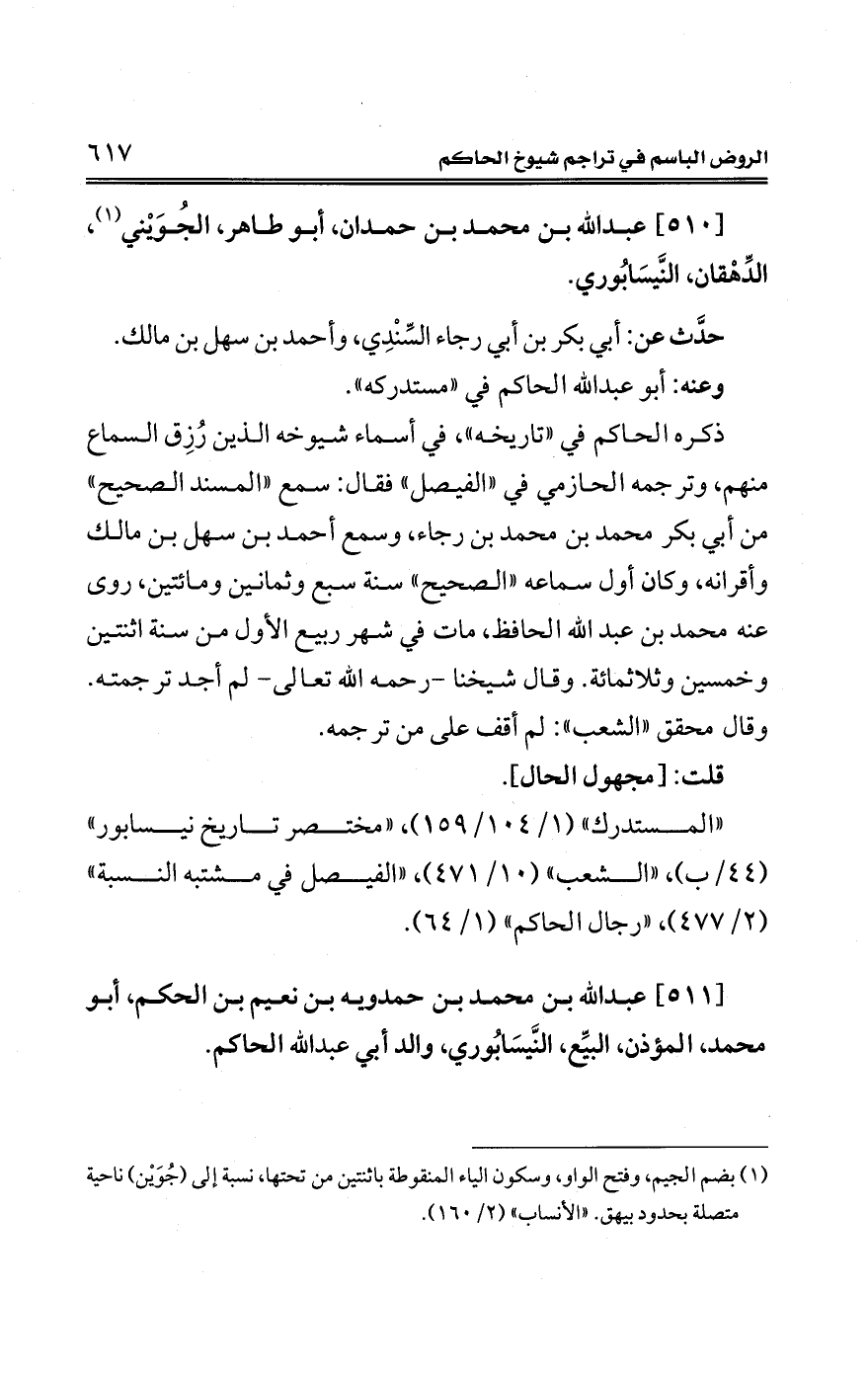 [511] عبد الله بن محمَّد بن حمدويه بن نعيم بن الحكم، أبو محمَّد، المؤذن، البيِّع، النَّيسَابُوري، والد أبي عبد الله الحاكم.