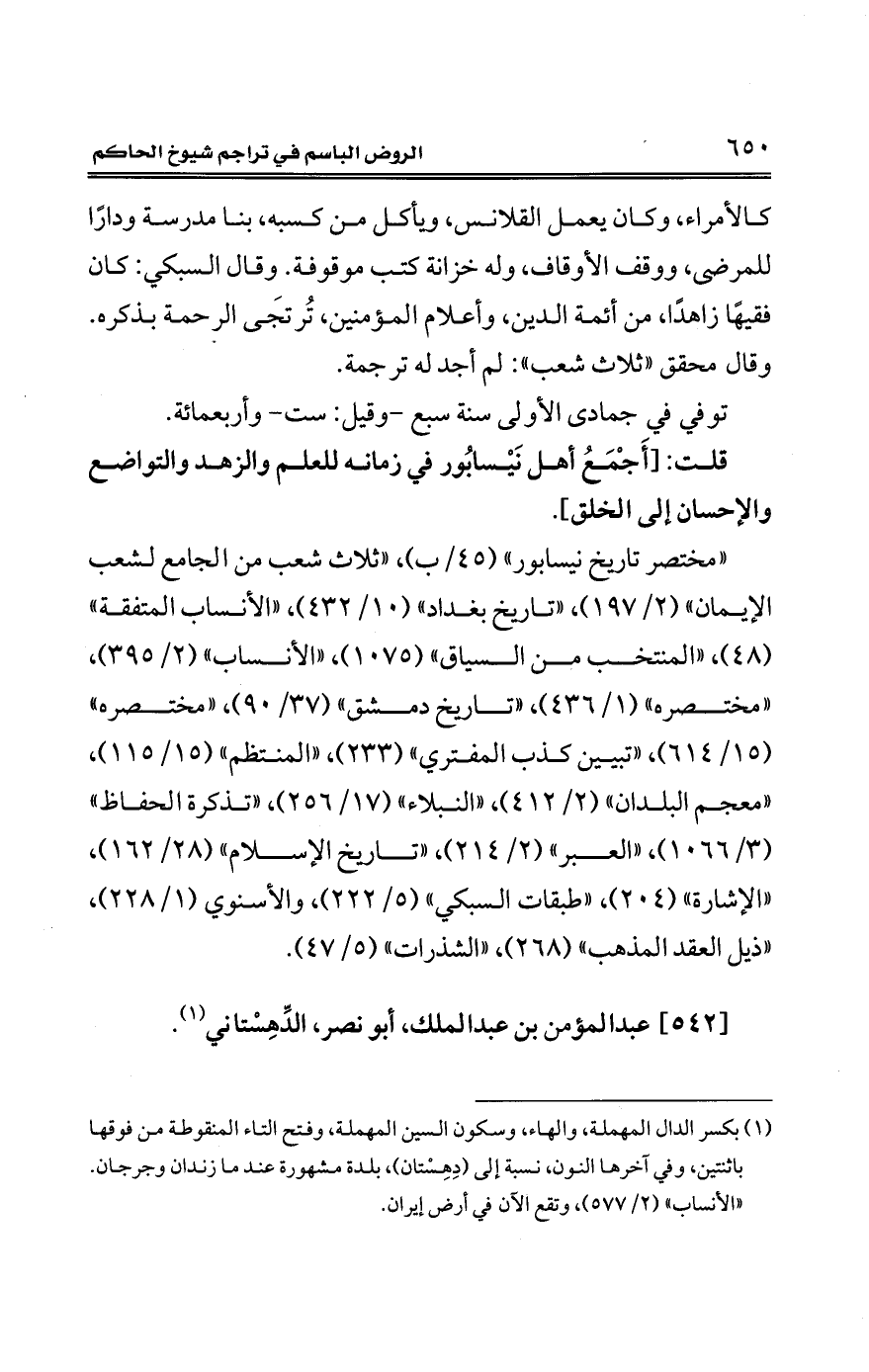 [542] عبد المؤمن بن عبد الملك، أبو نصر، الدِّهِسْتاني (¬1).