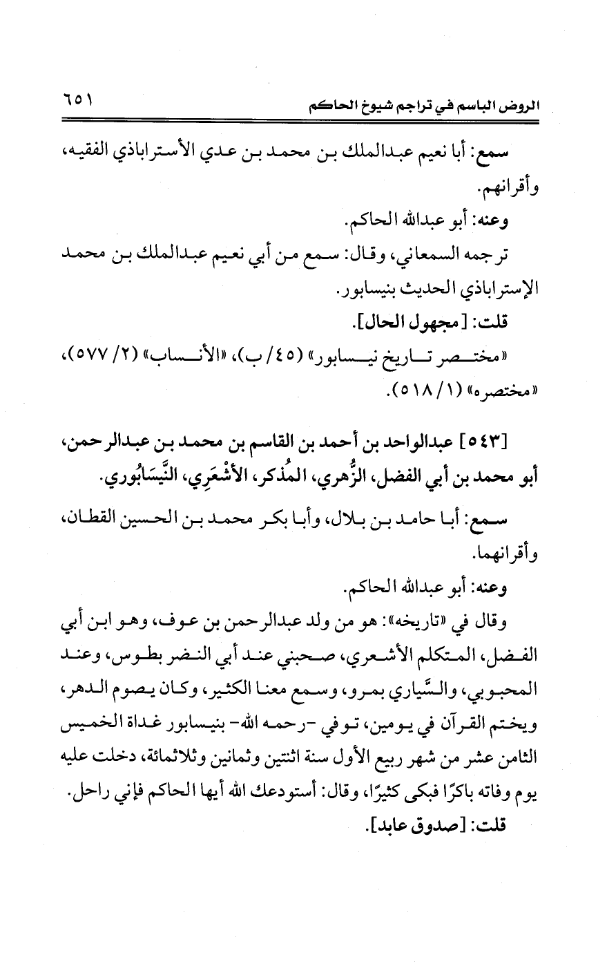 كتاب الروض الباسم في تراجم شيوخ الحاكم (اسم الجزء: 1)