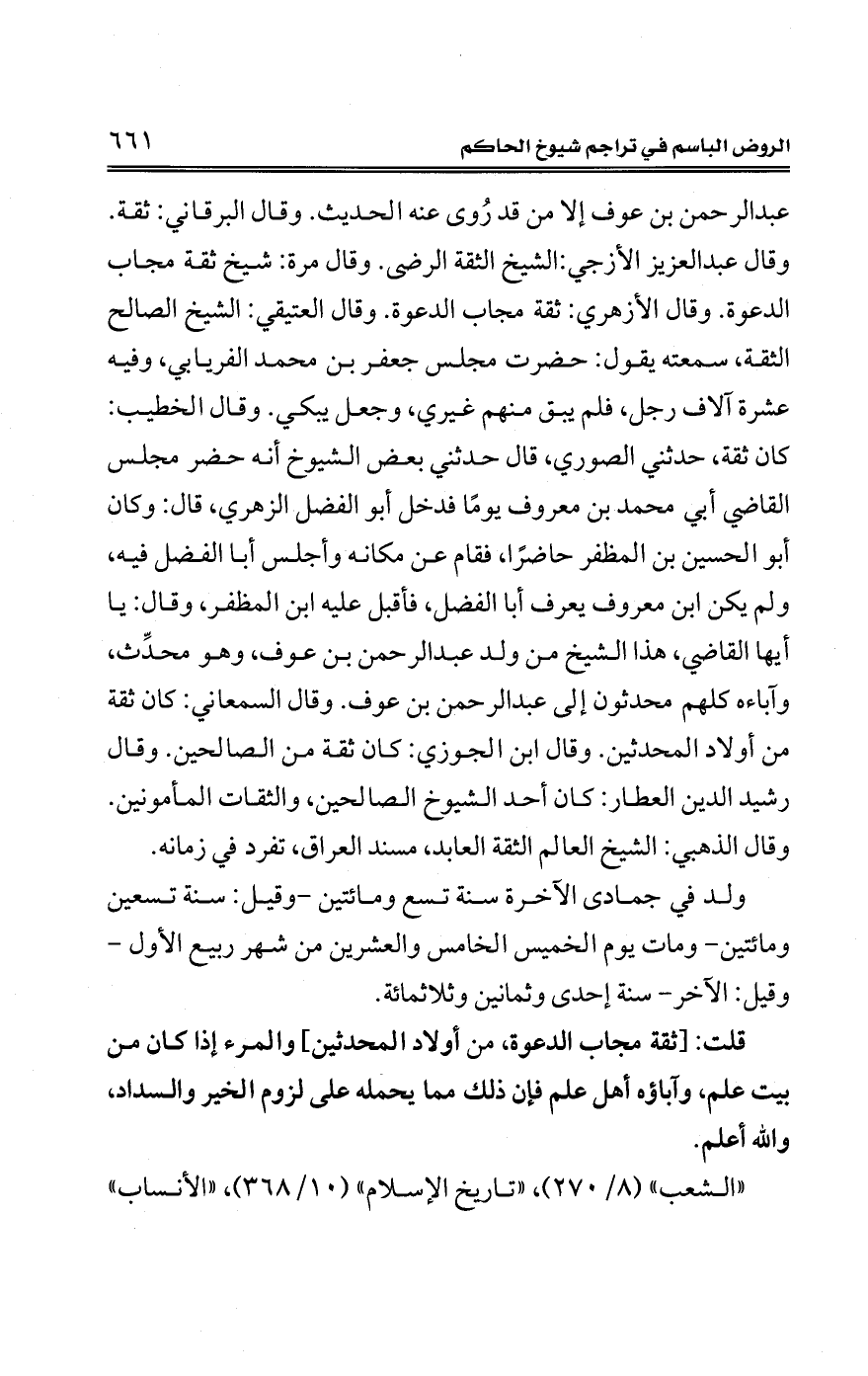 قلت: [ثقة مجاب الدعوة، من أولاد المحدثين] والمرء إذا كان من بيت علم، وآباؤه أهل علم فإن ذلك مما يحمله على لزوم الخير والسداد، والله أعلم.