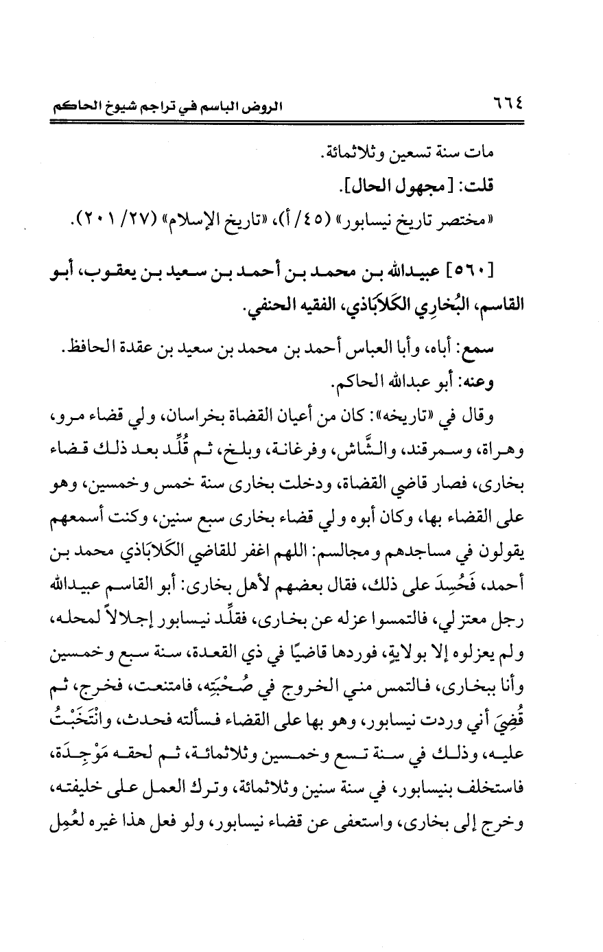 [560] عبيد الله بن محمَّد بن أحمد بن سعيد بن يعقوب، أبو القاسم، البُخارِي الكَلاباذي، الفقيه الحنفي.