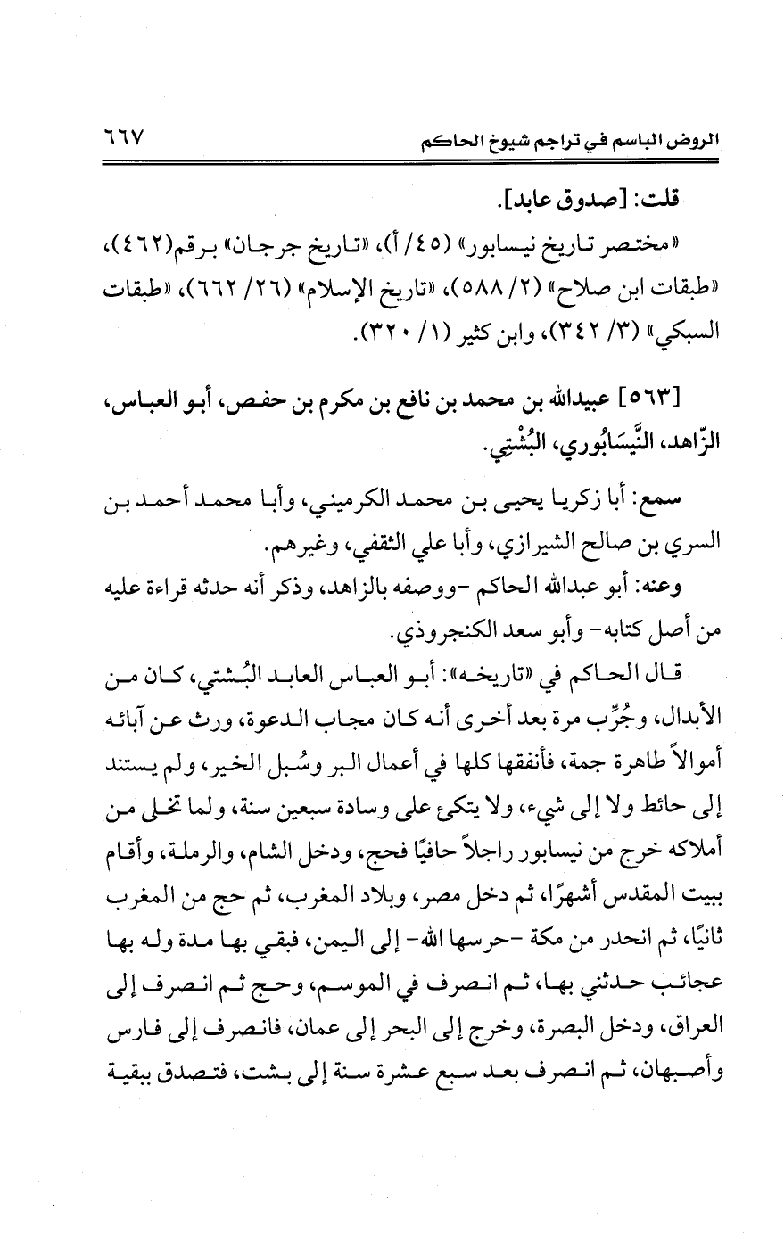 [563] عبيد الله بن محمَّد بن نافع بن مكرم بن حفص، أبو العباس، الزّاهد، النَّيسَابُوري، البُشْتِي.