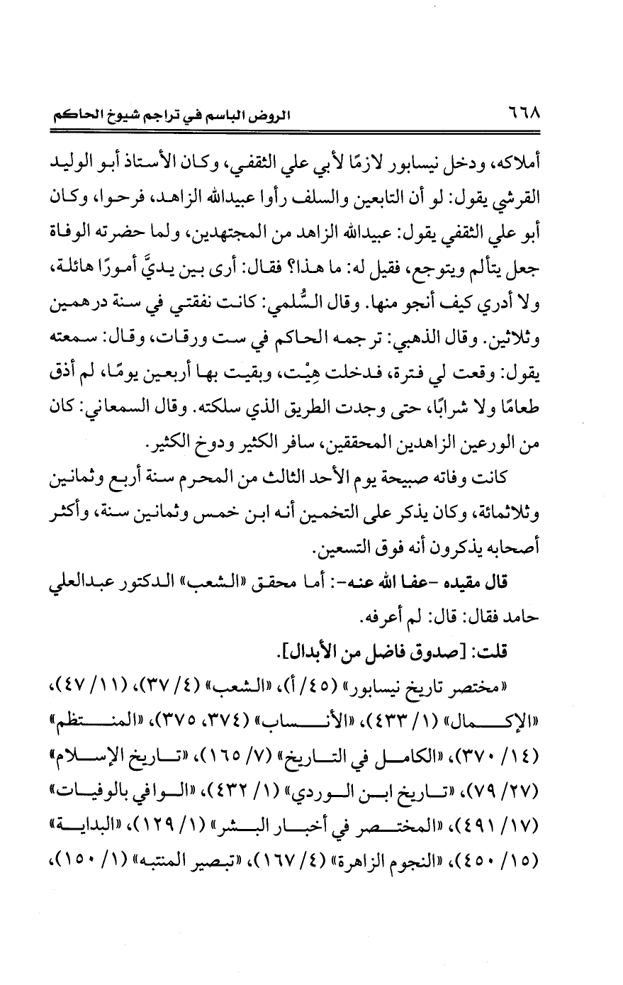 قال مقيده -عفا الله عنه-: أما محقق "الشعب" الدكتور عبد العلي حامد فقال: قال: لم أعرفه.