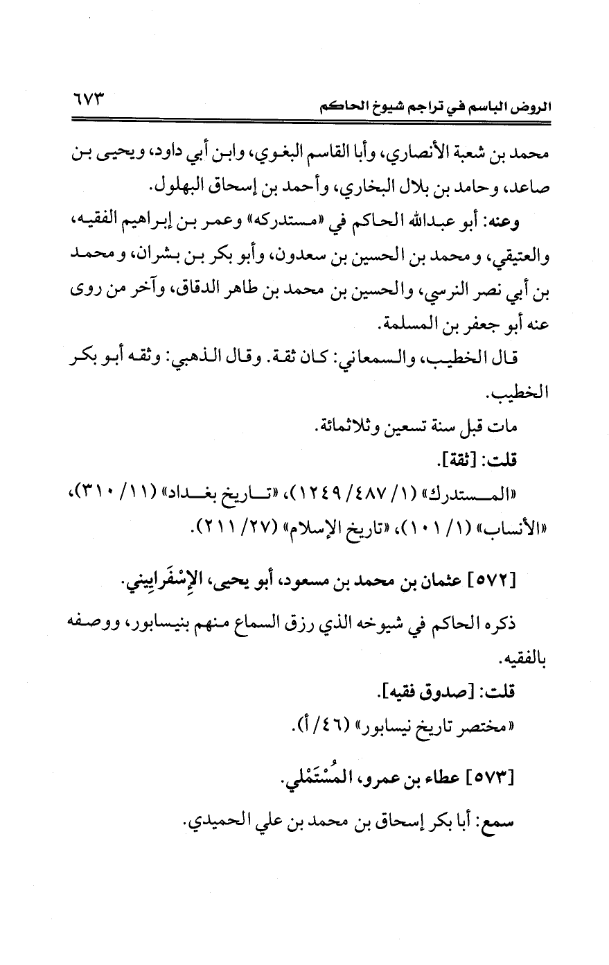 كتاب الروض الباسم في تراجم شيوخ الحاكم (اسم الجزء: 1)