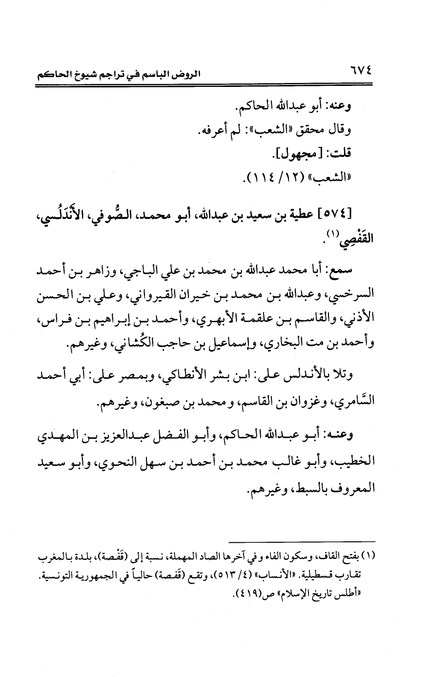 [574] عطية بن سعيد بن عبد الله، أبو محمَّد، الصّوفي، الأندَلُسي، القَفْصي (¬1).