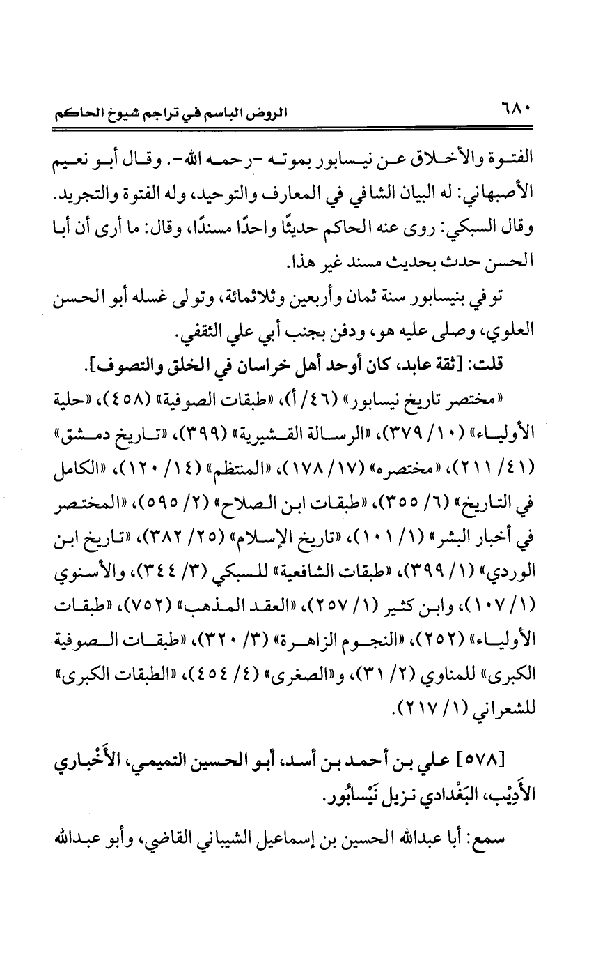 [578] علي بن أحمد بن أسد، أبو الحسين التميمي، الأَخْباري الأَدِيْب، البَغْدادي نزيل نَيْسابُور.