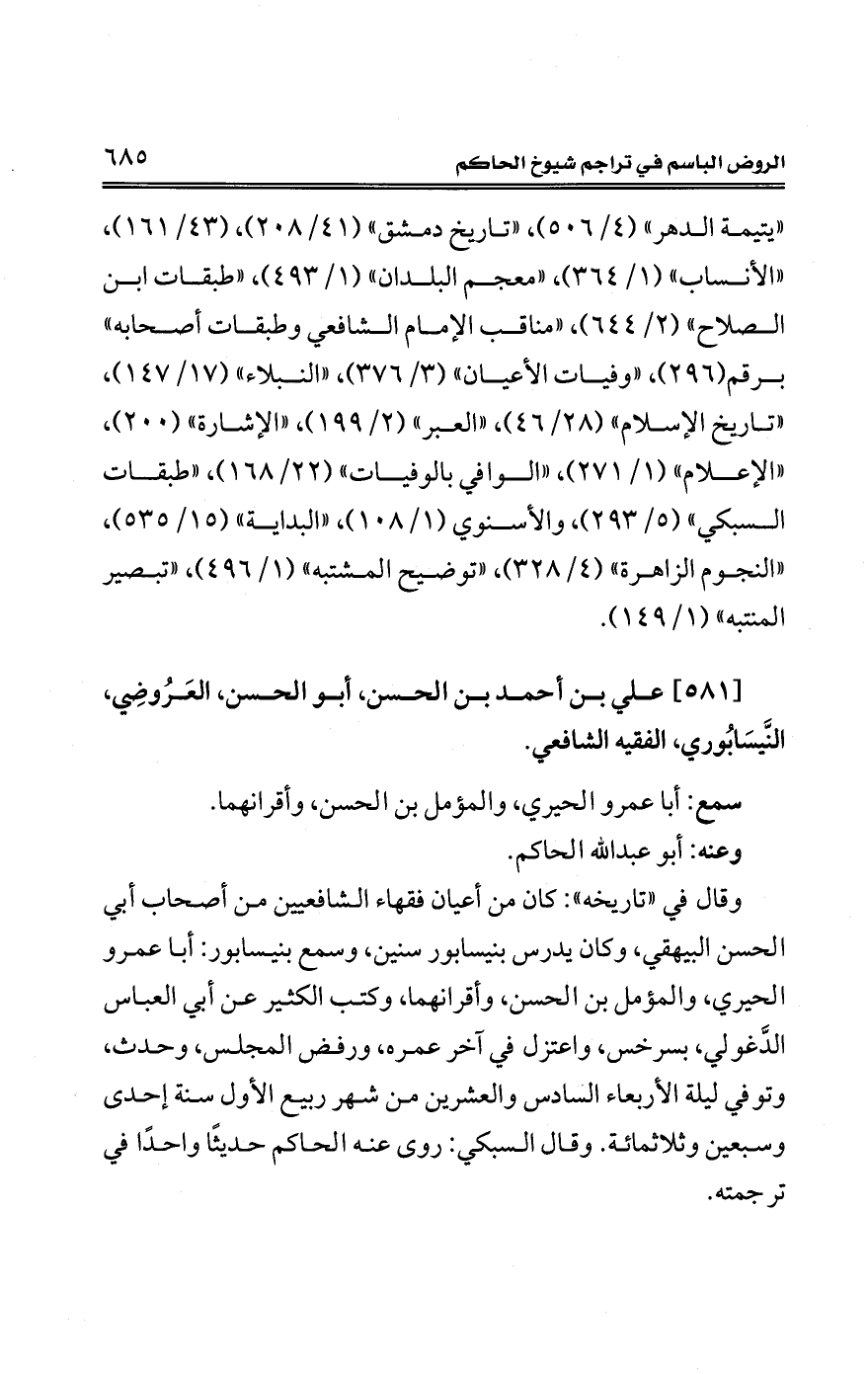 [581] علي بن أحمد بن الحسن، أبو الحسن، العَرُوضِي، النَّيسَابُوري، الفقيه الشافعي.