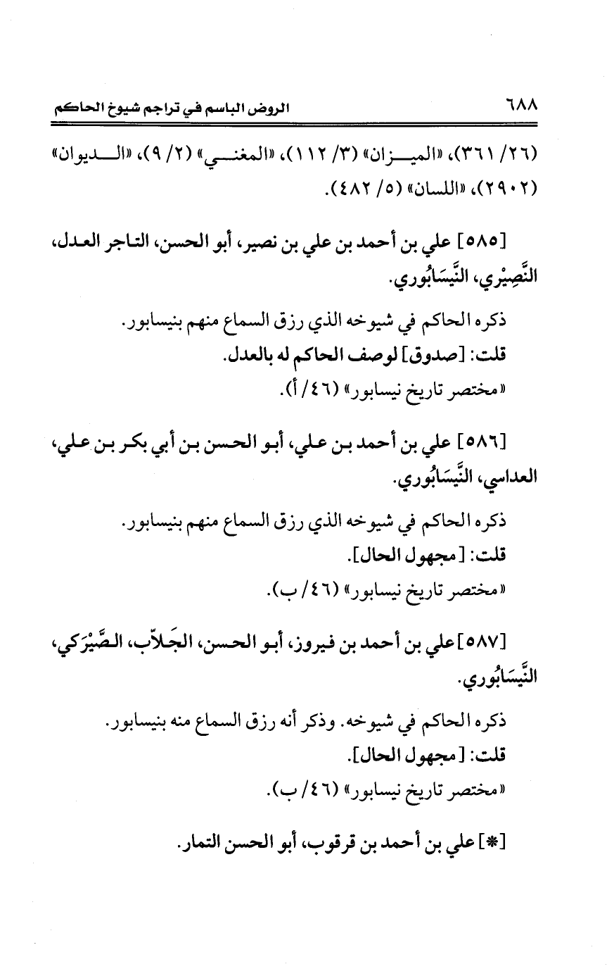 [586] علي بن أحمد بن علي، أبو الحسن بن أبي بكر بن علي، العداسي، النَّيسَابُوري.