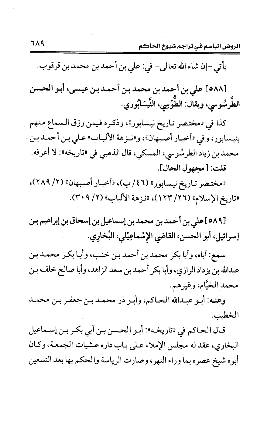 [588] علي بن أحمد بن محمَّد بن أحمد بن عيسى، أبو الحسن الطَّرسُوسي، ويقال: الطُّوْسِي، النَّيسَابُوري.
