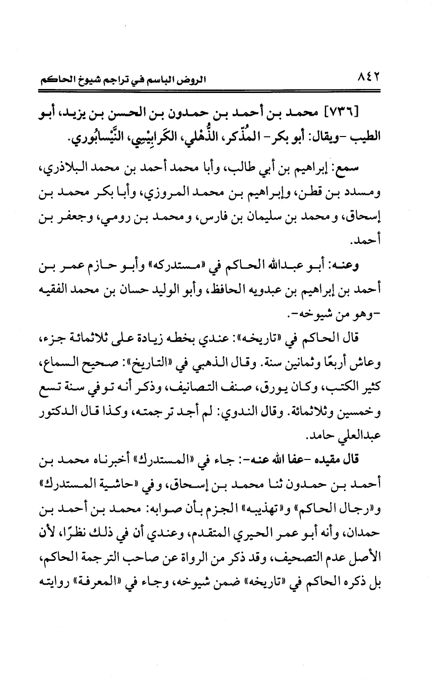 كتاب الروض الباسم في تراجم شيوخ الحاكم (اسم الجزء: 2)
