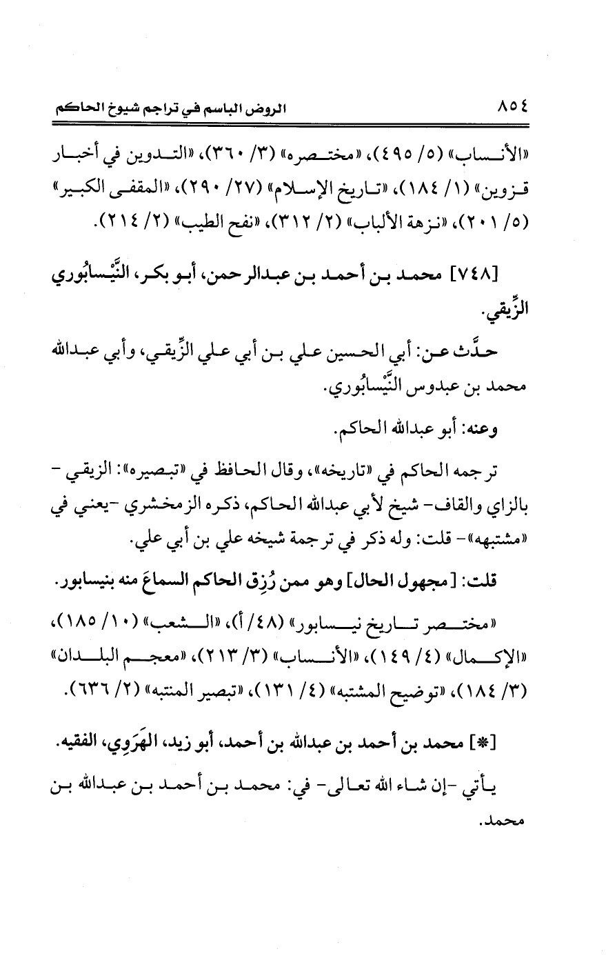 "مختصر تاريخ نيسابور" (48/ أ)، "الشعب" (10/ 185)، "الإكمال" (4/ 149)، "الأنساب" (3/ 213)، "معجم البلدان" (3/ 184)، "توضيح المشتبه" (4/ 131)، "تبصير المنتبه" (2/ 636).