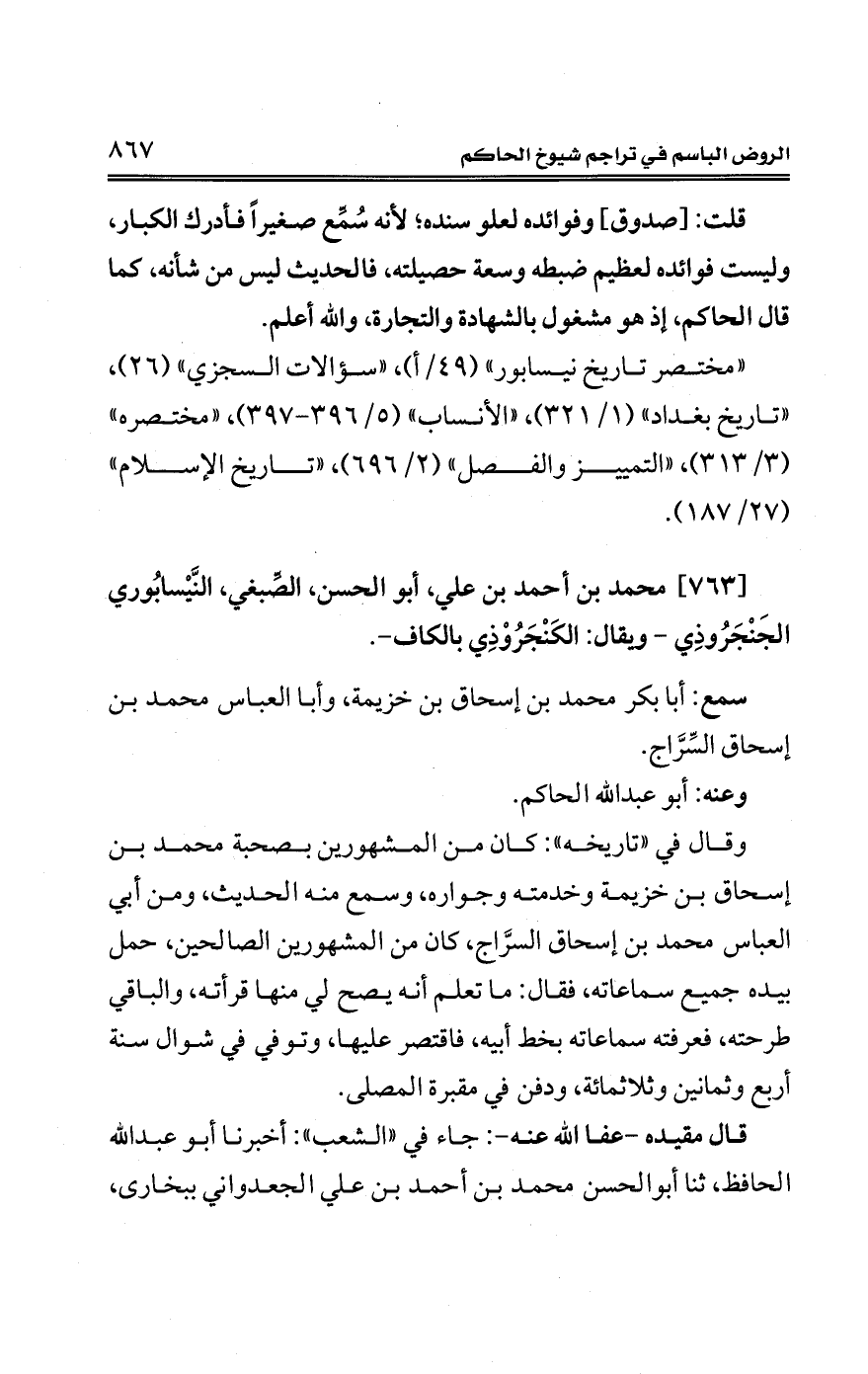 [763] محمَّد بن أحمد بن علي، أبو الحسن، الصّبغي، النَّيْسابُوري الجَنْجَرُوذِي -ويقال: الكَنْجَرُوْذِي بالكاف-.