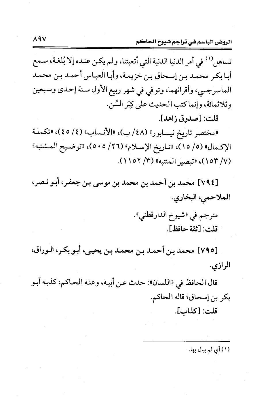 [794] محمَّد بن أحمد بن محمَّد بن موسى بن جعفر، أبو نصر، الملاحمي، البخاري.